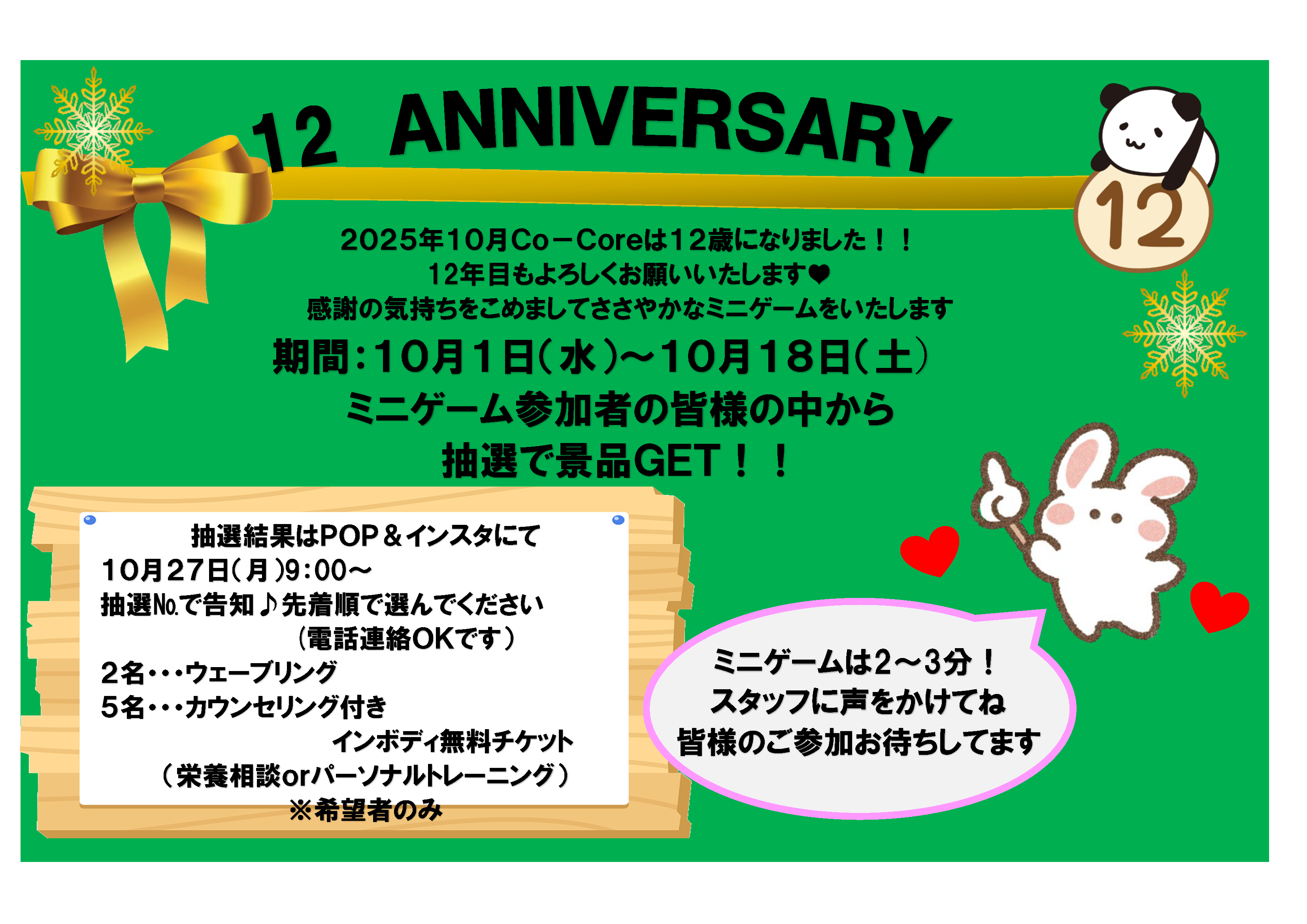 メディカルフィットネス コ・コア12周年記念イベント NEW!!